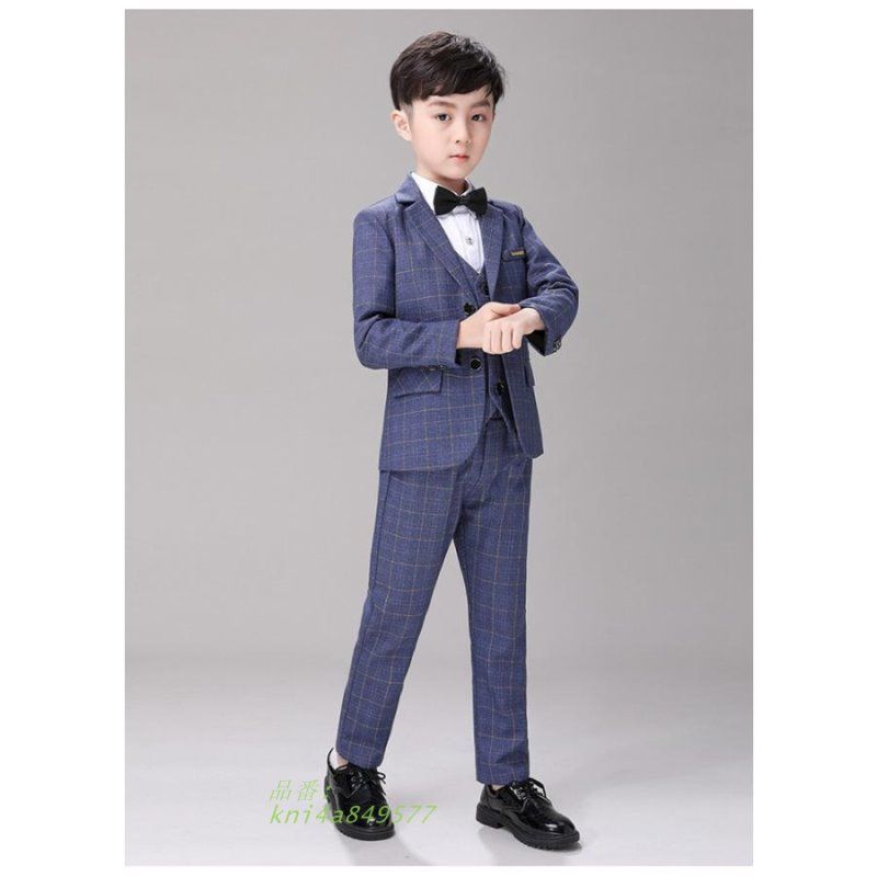 子供 スーツ 男の子 5点セット 入学式 セットアップ チェック柄 男 キッズ フォーマル 子供服 kni 4 a 849577