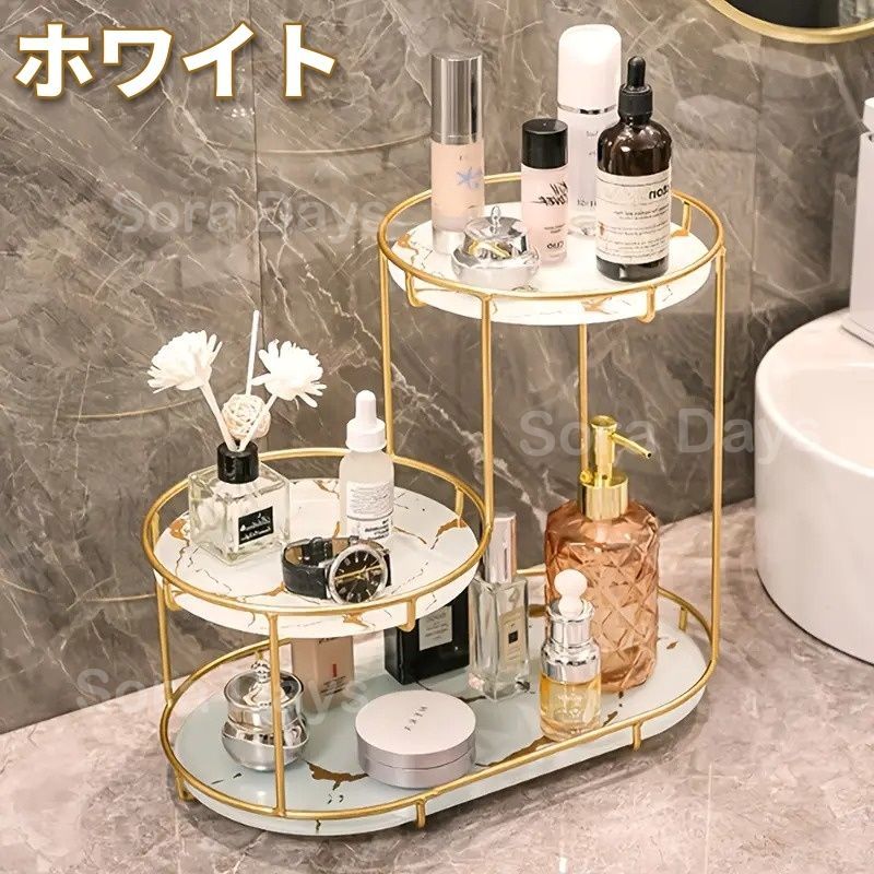 メイクスタンド コスメボックス 2段 大理石風 おしゃれ かわいい シンプル 感 モダン ナチュラル クラシック インテリア 北欧 バスルーム 化粧品ラック ベッドルーム パウダールーム 玄関 ブラック ホワイト .5 cm
