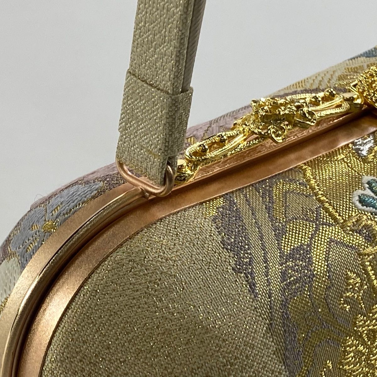 和装バッグ 秀品 フォーマル 華文 草花 金糸 箔 金色 正絹 和装小物