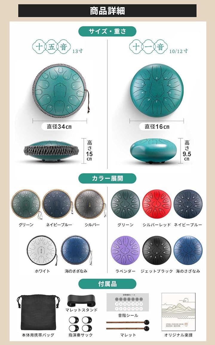 「納得の商品内容」本体サイズ直径34cm 高さ15cm[付属品]本体(サイズ:直径34cm 高さ15cm)[付属品・本体携帯用バッグ・マレットスタンド・指演奏サック・音階シール・マレット・PDF楽譜案内