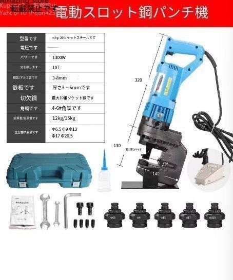 電動油圧パンチャー 10 t 強力 パンチダイ5種付 φ6 5~20 5 mm 1400 W AC 100 V 鉄板 鋼板 山形鋼対応 油圧式 パンチ 穴あけ工具 110