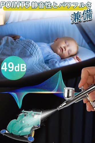 【安定した高圧エアー】大型の据え置き型に劣らないパワフルさを持っています。業界高水準の0.28Mpa(最高)の空気圧力と12L/minの空気吐出量だから、塗装がもっと楽しくなります。弱いエアー圧による効果低下を改善し、優れた塗装効果を実現します。ダイヤルスイッチを回すだけで圧力を直感的に調整できます。用途に応じて吹き加減を手軽にカスタムできます。初心者から上級者まで、幅広いユーザーに愛用していただけます。