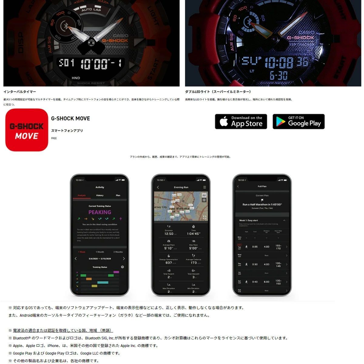 Bluetooth接続により、スマホの電波時計とリンクし、常に正確な自動時刻修正や簡易通知機能(報音のみ)、歩数計測機能など、日常の健康管理からランニングの持久力強化まで、またファッションアイテムとしても幅広く役立つモデルです。