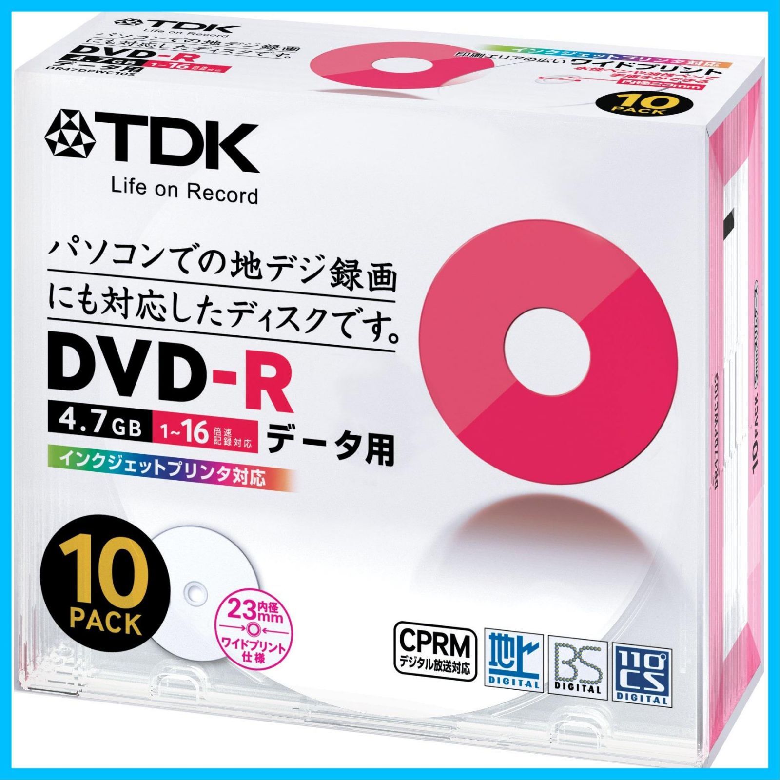 TDK CPRM対応 データ用DVD-R 4.7GB 1-16倍速対応 ホワイトワイドプリンタブル 10枚パック DR47DPWC10S