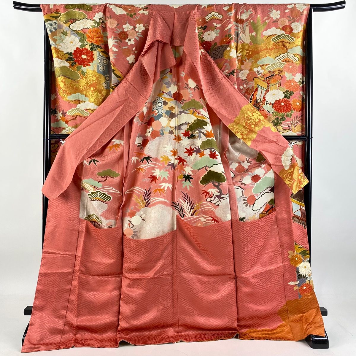 振袖 身丈179.5 cm 裄丈70 未仕立て 仮絵羽 御所車 草花 金糸 金彩 ピンク 正絹 秀品