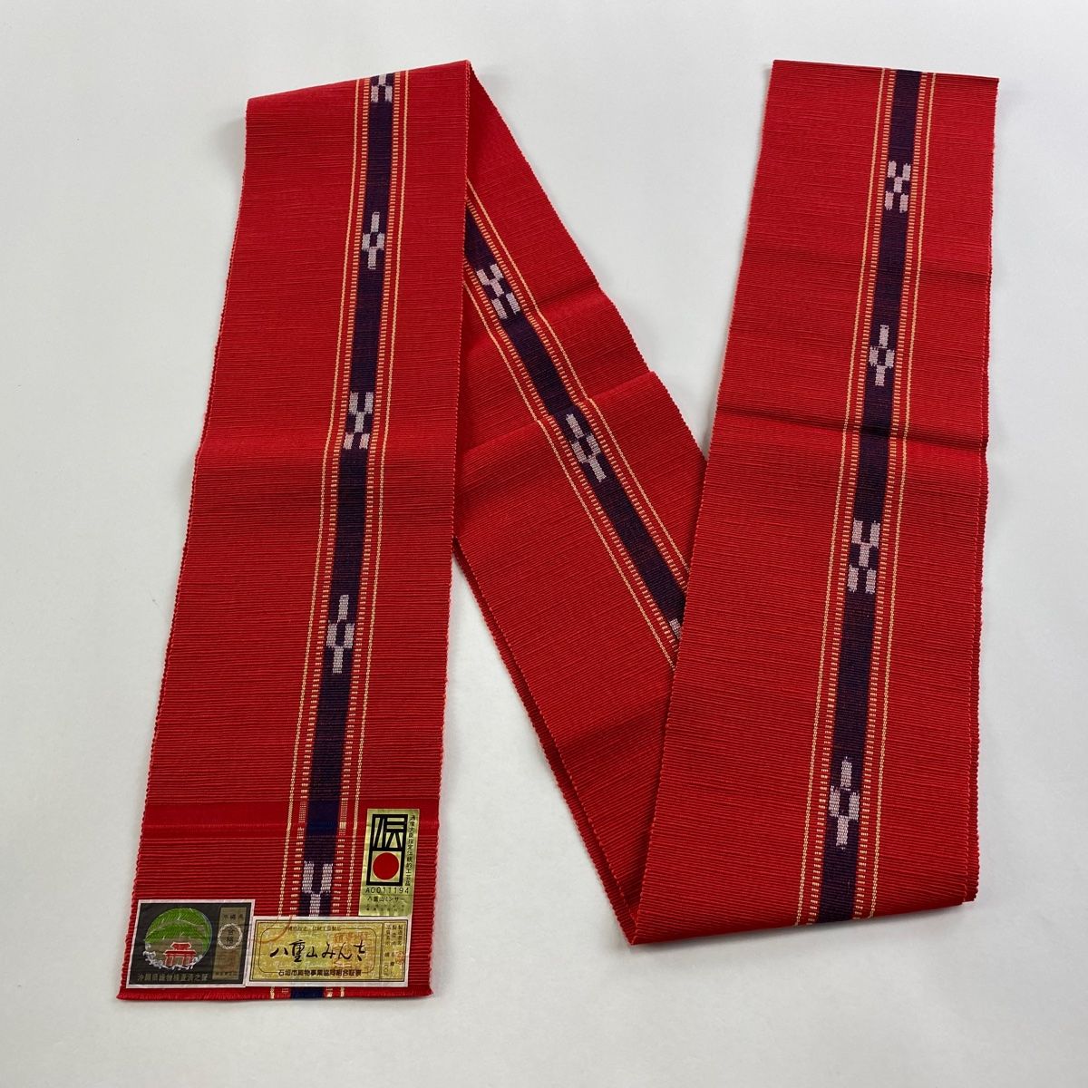 半幅帯 八重山ミンサー 証紙 縞 絣柄 赤 綿
