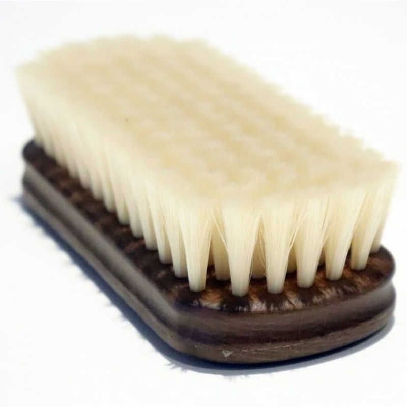 豚毛ブラシは一つの毛穴に対する毛量が多く、1本1本のコシが強いため艶出しに特化したブラシです。使い込み、ブラシの毛にクリームが浸透していくにつれ靴にツヤが出しやすくなります。手植えブラシは機械植えに比べて毛抜けが少ないので、毛が育ってからも長くご使用いただけます。