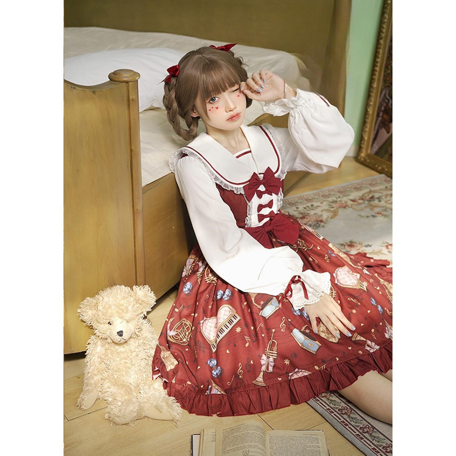 ロリータワンピース セーラー ゴスロリ 学生服 ゆったり 学園風 少女 リボン付き ゴシック風 森ガール 長袖制服 ガー