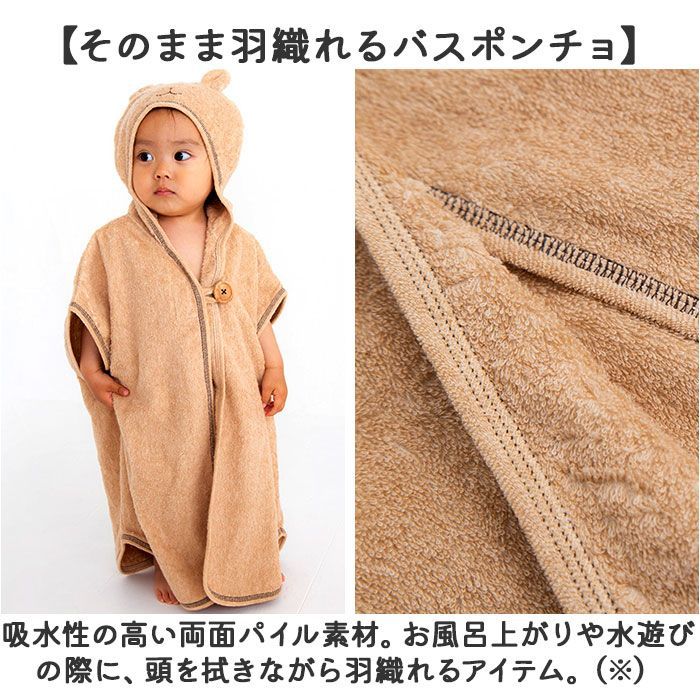 愛らしさ抜群☆日本製「POMPKINS BABY オーガニックバスポンチョ」。
