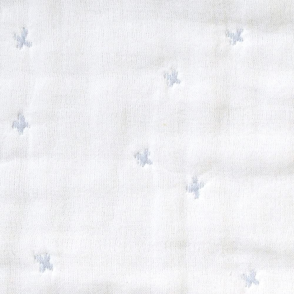 コットン100%。柔らかく、ふっくらふくふくの国産6重ガーゼケット。6重に重ねたガーゼは、空気の層を作り温度を保つことができるため、冬でも暖かです。通気性、速乾性が高いので汗を吸ってもすぐ乾き蒸れません。【ふくふくガーゼ】吸水性と保温性を兼ね備え、1年中ずっと使えます。表面は細い糸、真ん中に進むにつれて太い糸を使用して織ることで、ボリューム感を出し、洗えば洗うほどふっくら感が増すのが生地の特徴。昔から織物が盛んな愛知県三河地方の高い技術力とこだわりを結集して作りました。2018年に「おもてなしセレクション」を受賞した「ふくふくガーゼ」は、ご自宅用にもギフトにもおすすめです。散りばめられたクロス柄は、天使のようであり、鳥や星の瞬きのよう。“いつもあなたのそばに”赤ちゃんの笑顔に引き寄せられ、赤ちゃんの周りには、自然と幸せがあふれています。そんな、赤ちゃんの誕生を祝福するテキスタイルです。やさしい色合いのシェルピンクと、甘すぎず、インテリアにも馴染みやすいパウダーブルーの2色展開です。周囲にハマグリ刺繍を施し、赤ちゃんらしい柔らかい雰囲気のデザインにしました。