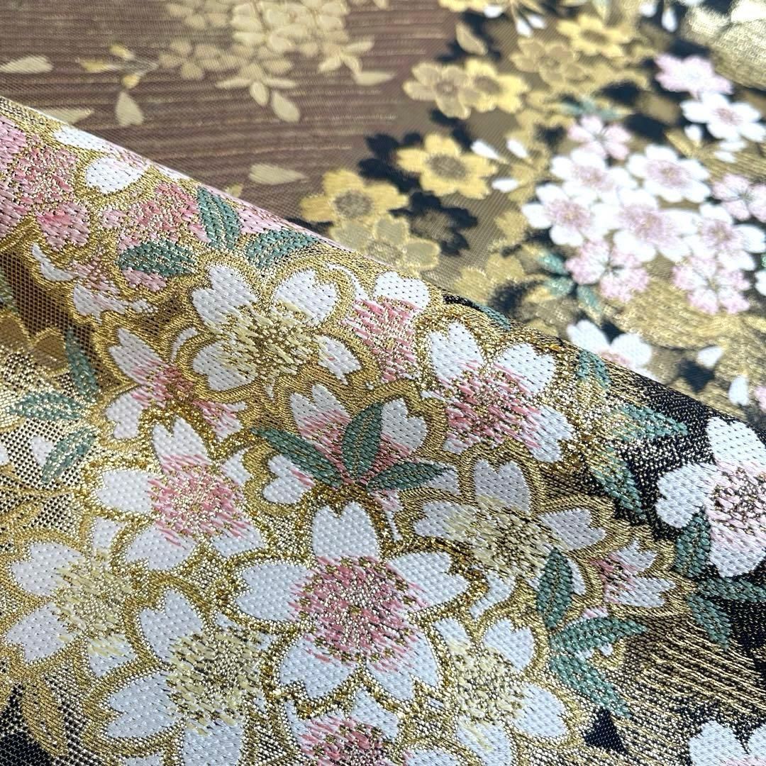 ゴールド地に桜が咲き誇る、華やかで上品な袋帯です。