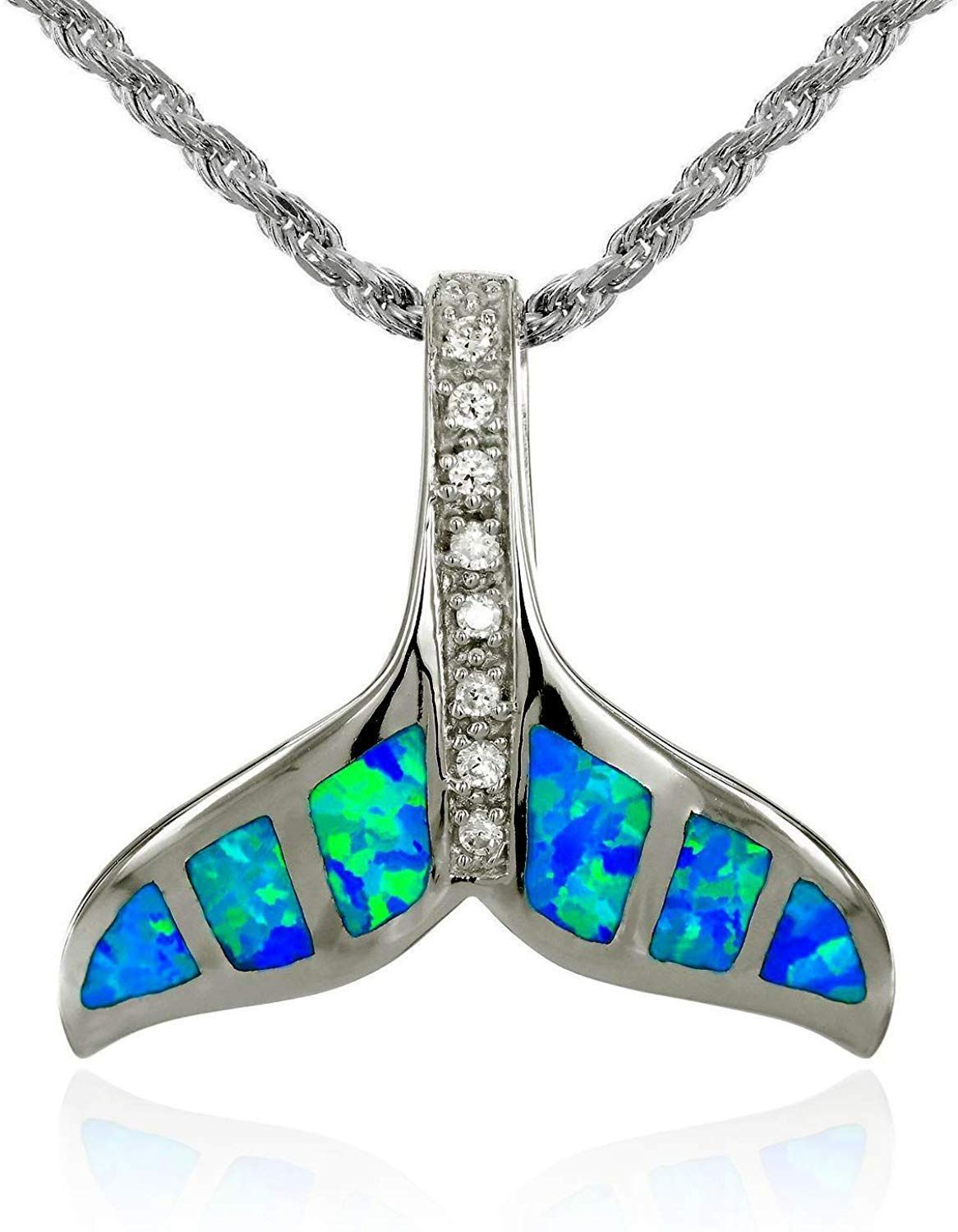 Style ロープチェーン60 cm付 レイラニ ハワイアンジュエリー ブルーオパール ホエールテール クジラの尻尾 ペンダント ネックレス メンズ レディース シルバー925