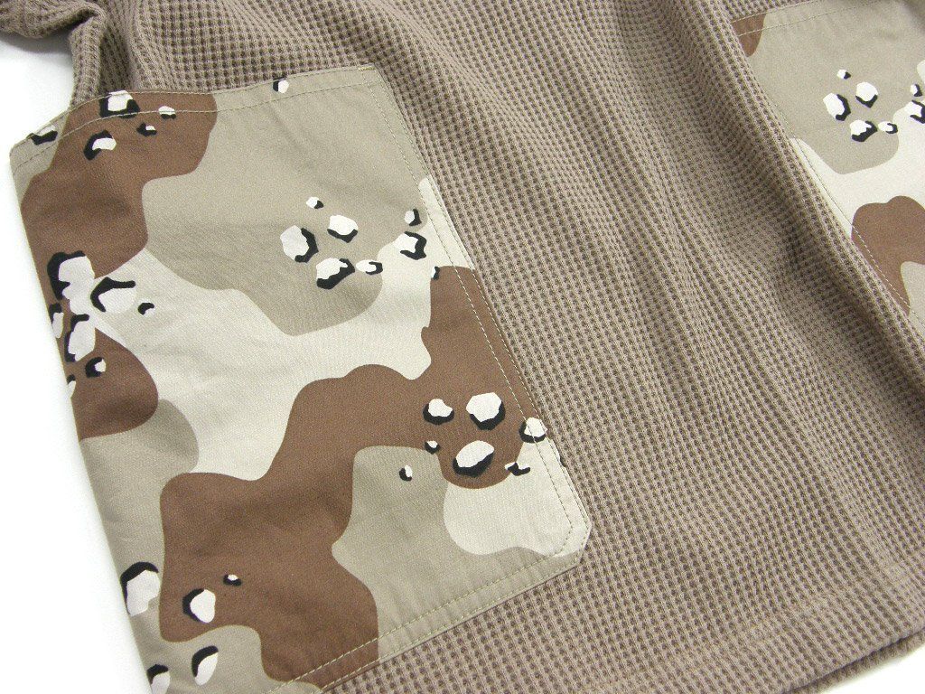 GUNG HO ガンホー カモ柄 ポケット付き 肉厚 ワッフル ロンT ヘビーオンス アメリカンコットン サーマル カットソー ミリタリー ワーク アウトドア キャンプ ベージュ系 | 秋冬