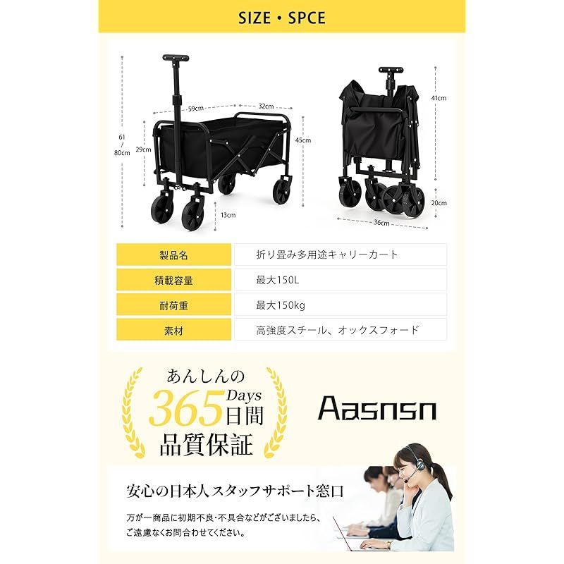 商品名:Aasnsn キャリーワゴン 小型 キャリーカート 自立収納 台車-カート アウトドアワゴンミニ 大容量 150kg高耐荷重 子供乗せれる キャンプ 折りたたみ コンパクト キャンプ カート ワンタッチ収束式 軽量 静音 キャンプ・引越し・BBQ・買い物・釣り