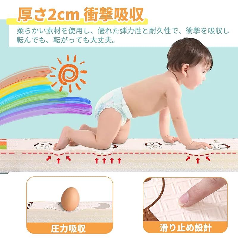 【高い快適性と優れたクッション性】厚さ2cmのXPEフォームスポンジ素材は弾力性と耐圧性に優れ、クッション性も優れており、子供たちに安全な遊び環境を提供できます。 マットの表面は通常柔らかいので、赤ちゃんはその上で這ったり遊んだりするのが非常に快適です。