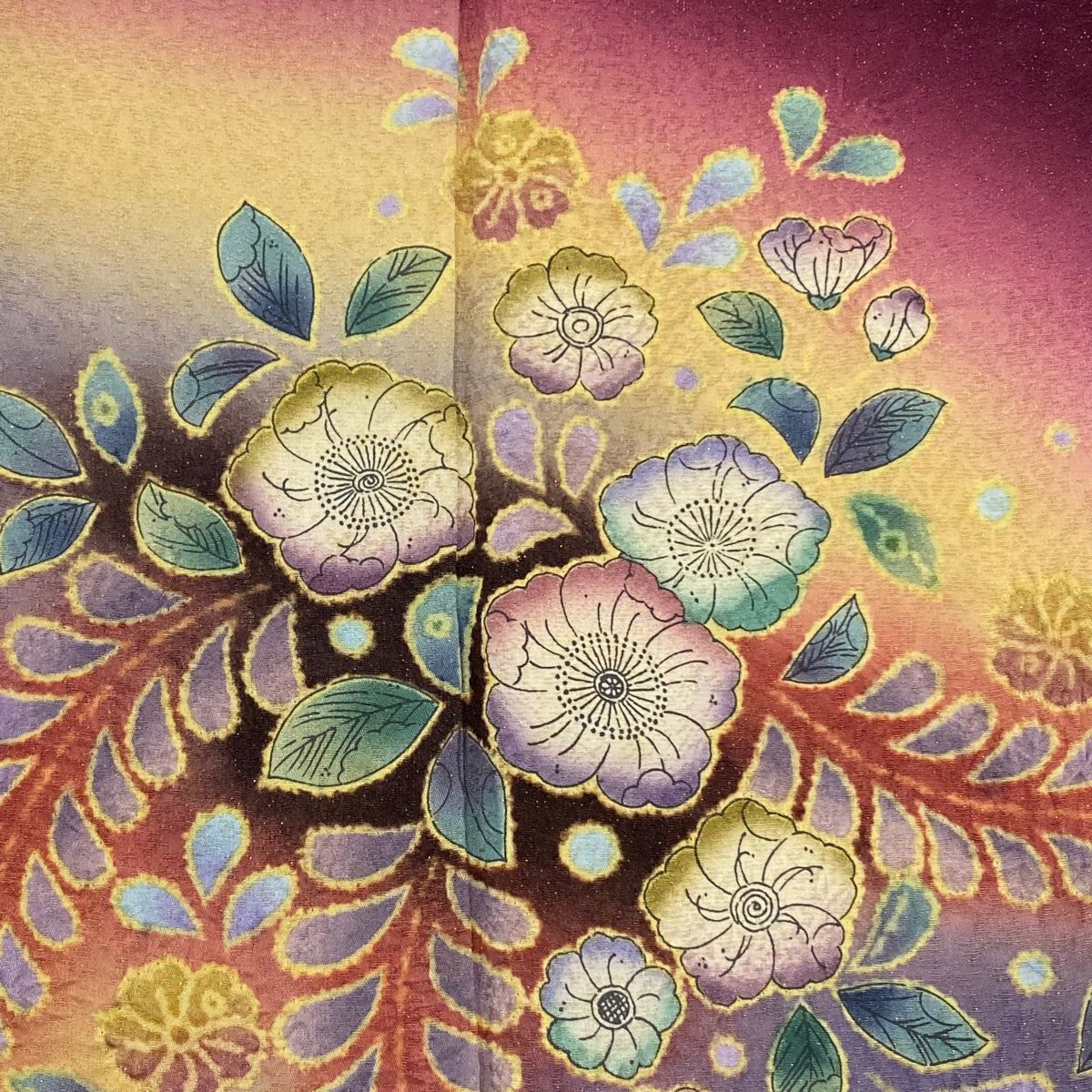 付下げ 身丈156 cm 裄丈61 S 袷 辻が花柄 金通し 絞り 赤紫 正絹