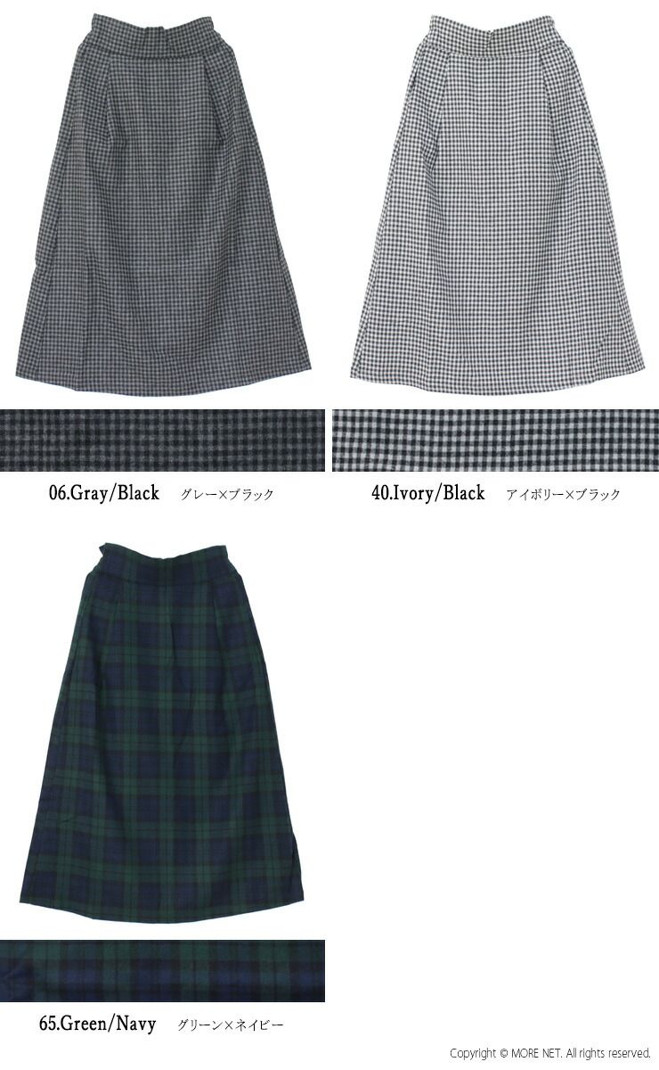 50%OFF ナル NARU リサイクルウールクロスチェックハイウエストスカート 656937 ボトムス ブロックチェック ロング丈 日本製 レディース 交換不可