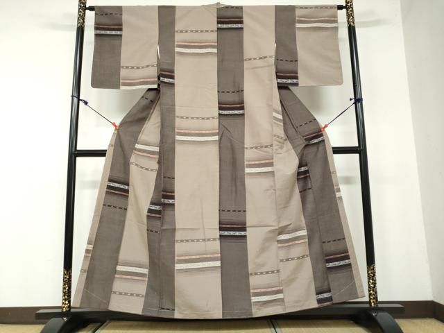 平和屋着物 上質な紬 伝統工芸 陽三彩 横段文 反端付き 正絹 ud