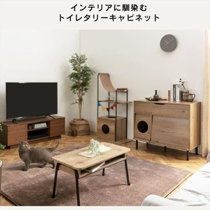 アイリスオーヤマ キャットトイレタリーキャビネット収納付き CTC-890 S アッシュブラウン ブラック