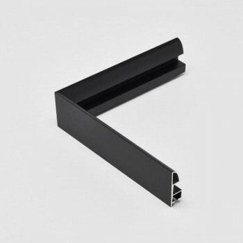 額縁の側面部分が10度斜めになっているアルミ額です。この傾きによって、安定して壁に立てかける事が出来ます。内側は作品に向かって緩やかなカーブを描いており、柔らかく豊かな印象を生んでいます。