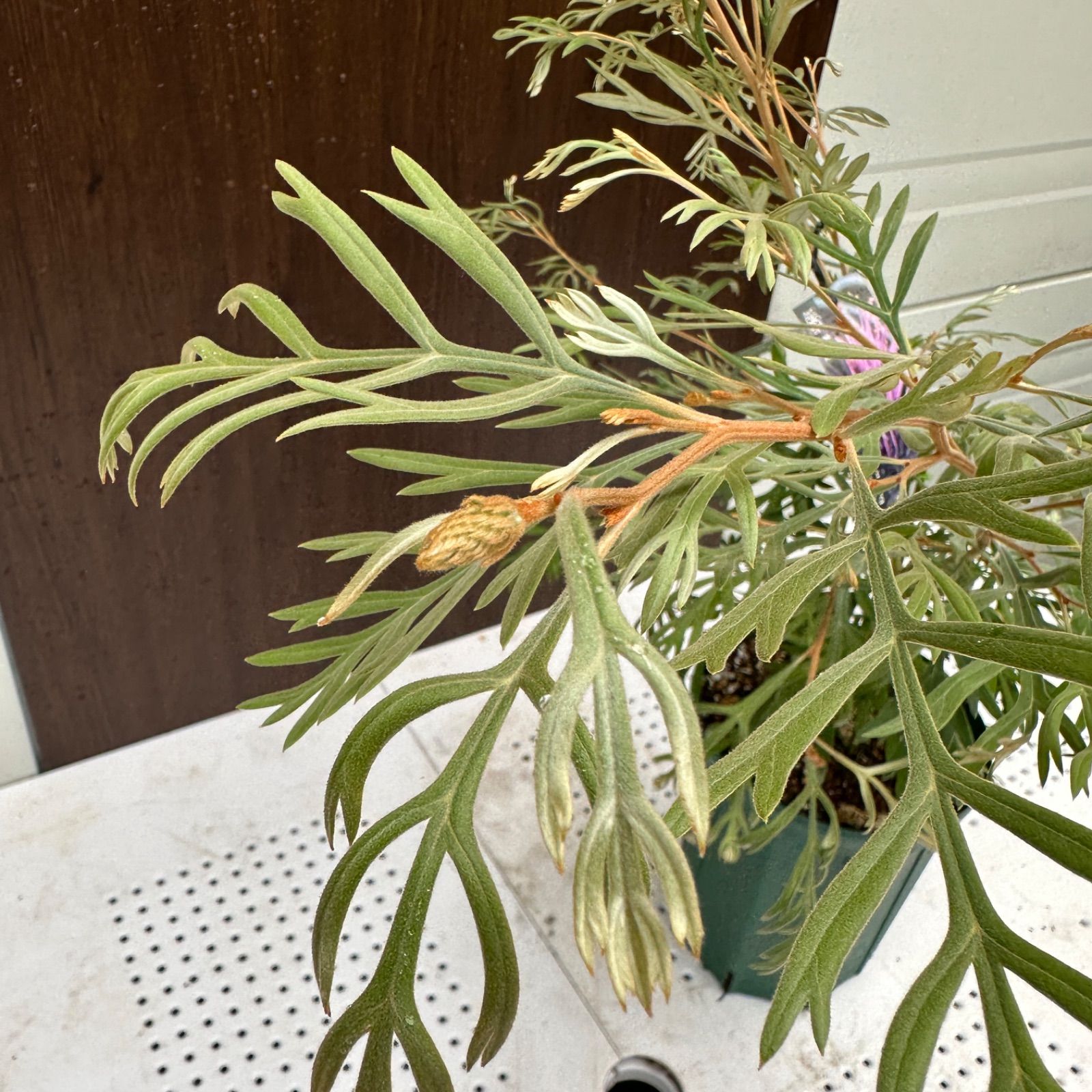 グレビレアの中でもかなり花付きが良く、シルバーがかった葉っぱに赤紫とピンクの花がとてもきれいな品種です。