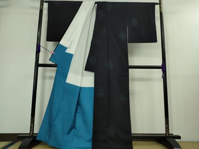 平和屋着物 上 本場結城紬 重要無形文化財 奥順謹製 100亀甲 飛び亀甲柄 花菱 濃紺地 大丸扱い 証紙 保証書付き kh 5