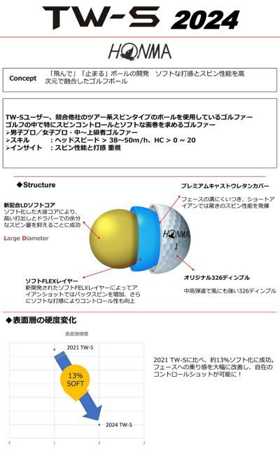株式会社本間ゴルフは、ツアースピン系『TWS』とツアーディスタンス系『TWX』ボールの最新モデルを、2024年2月16日より全国のHONMA直営店および製品取扱店にて発売いたします。