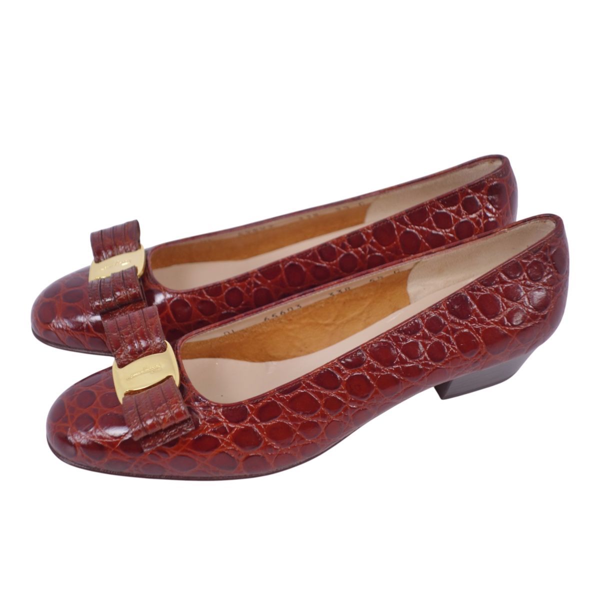 未使用 サルヴァトーレ フェラガモ Salvatore Ferragamo パンプス ヴァラ クロコ型押し レザー 靴 レディース 5.5(23cm)