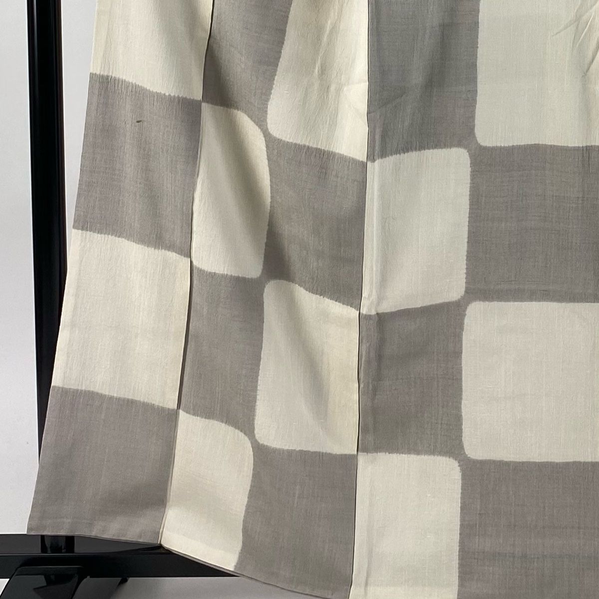 小紋 身丈161.5 cm 裄丈67 M 袷 紬地 市松 絞り クリーム 正絹