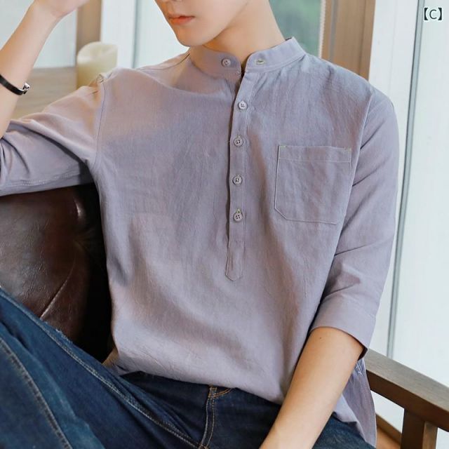 M メンズ ファッション 服 オシャレ シンプル 大人 かっこいい 大きいサイズ ストリート 紳士服 夏 リネン 半袖 シャツ 冷感 薄手 カジュアル 白 スリム スタンド 七分袖