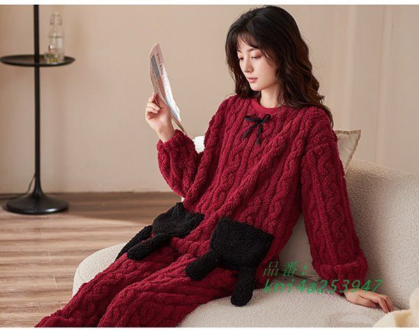 パジャマ レディース 冬 上下セット ルームウェア あったかい ワインレッド 2 L ゆったり 部屋着 秋冬 可愛い 大きいサイズ 厚手 kni 4 a 253947