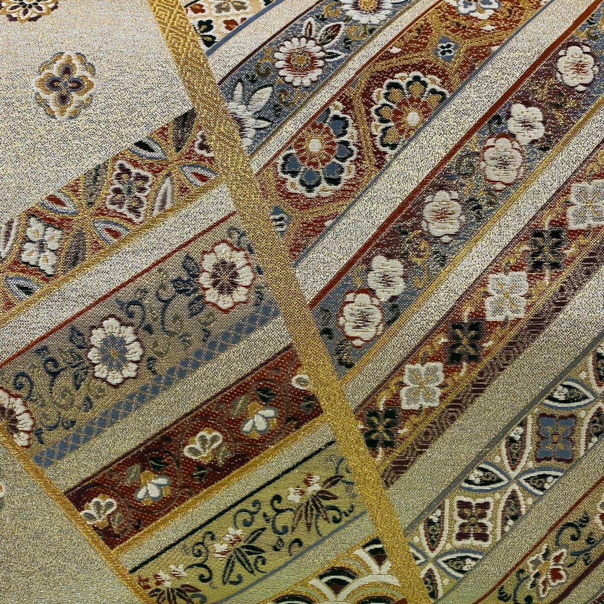 袋帯 秀品 草花 花菱 箔 金色 六通 正絹