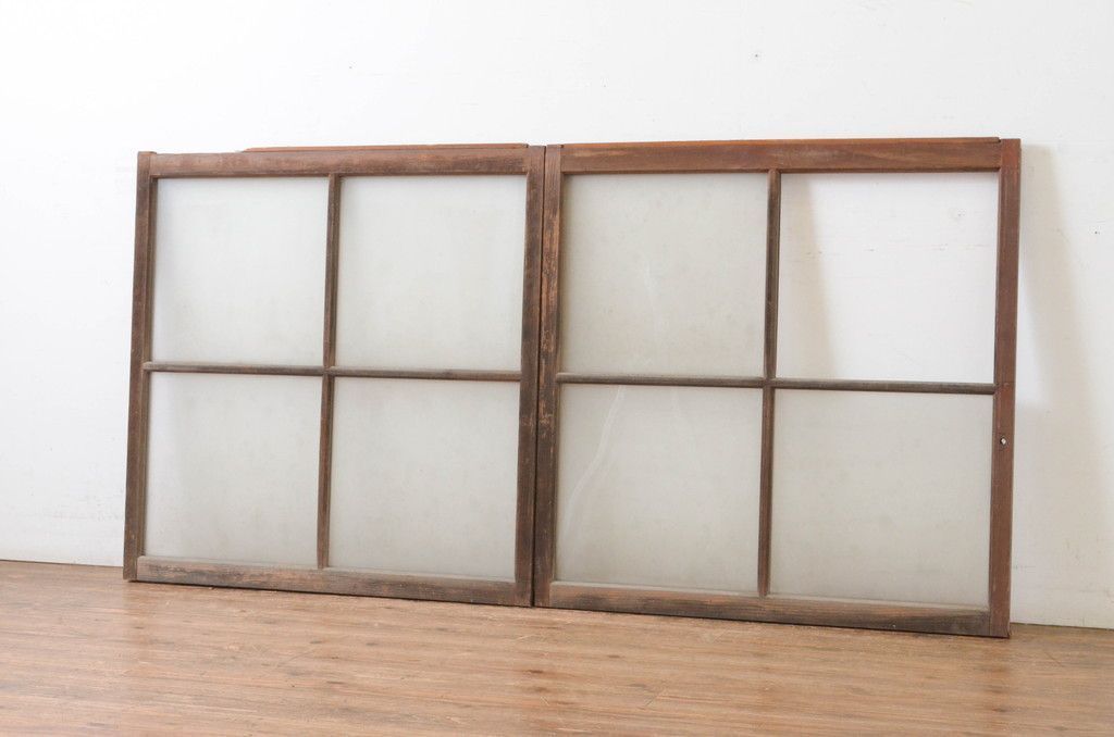 現状販売 ガラス窓 セット アンティーク建具 レトロ ガラス戸 引き戸 4~7営業日前後で発送 修理加工希望の方3ヶ月程で発送 R 064992