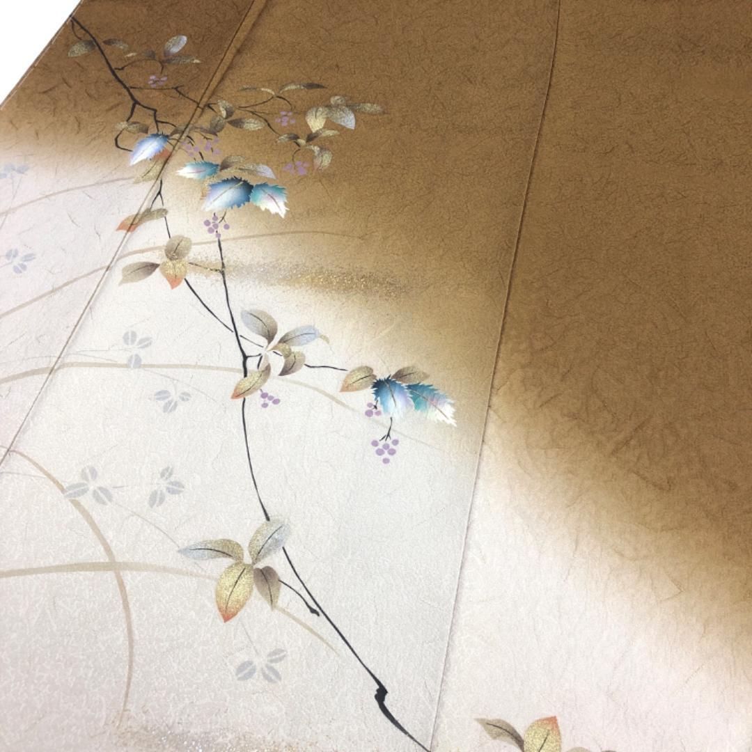 付下げ 枝葉模様 暈し 金銀彩 団栗色 しつけ糸 K-5271