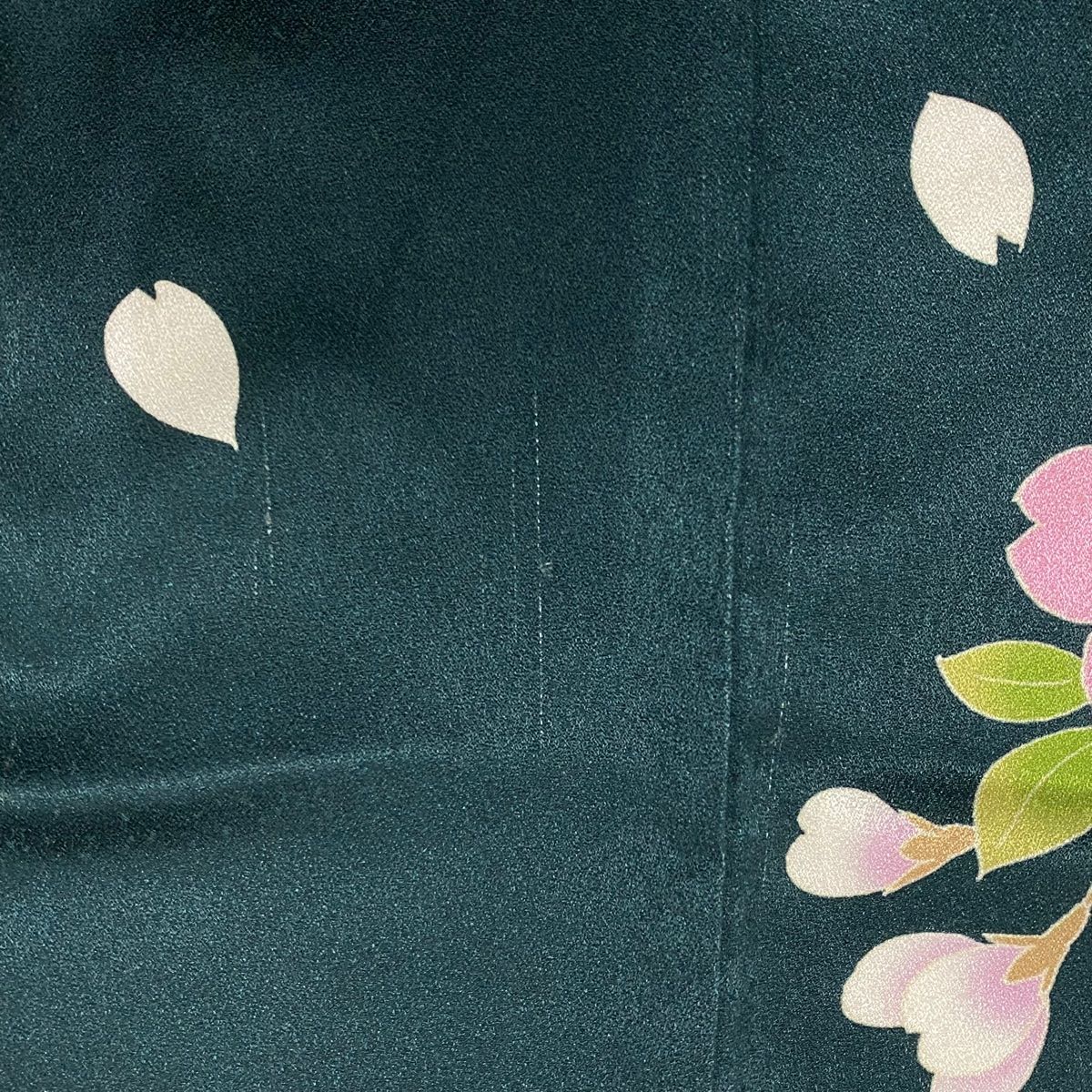 振袖 身丈168.5 cm 裄丈68 L 袷 牡丹 桜 ぼかし 染分け 深緑 正絹