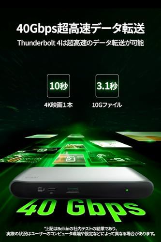 Belkin [Apple公認] 5-in-1 Thunderbolt 4ドッキングステーション 40Gbpsデータ転送 96W PD対応 デュアル4K/60Hz シングル8K/30Hz 150W電源ユニット&TB4ケーブル(0.8m)付属 INC013qcS