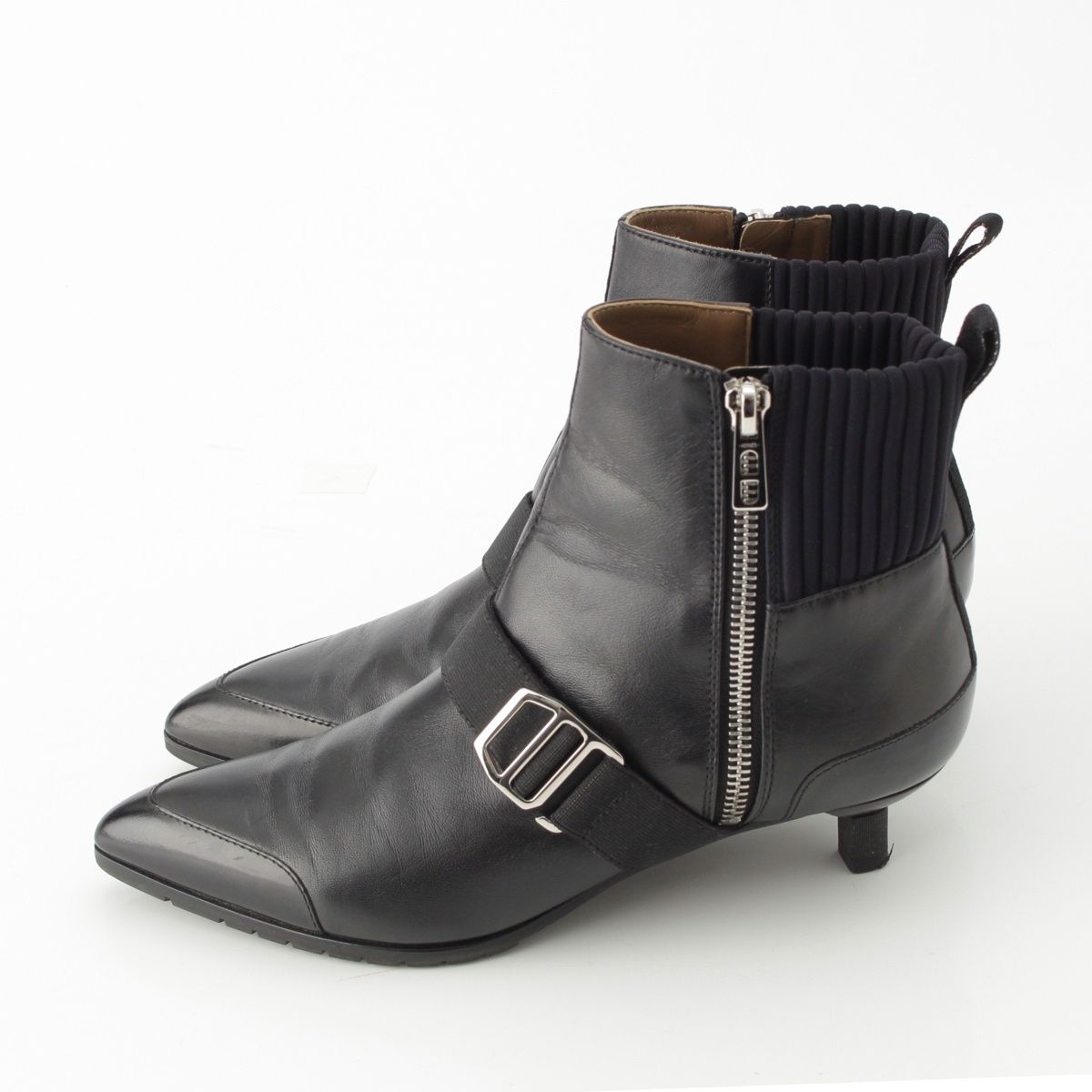 エルメス レザー ベルト付き ニット切替 ポインテッドトゥ サイドジップ ショート ブーツ M 10516 ブラック 35 1 2