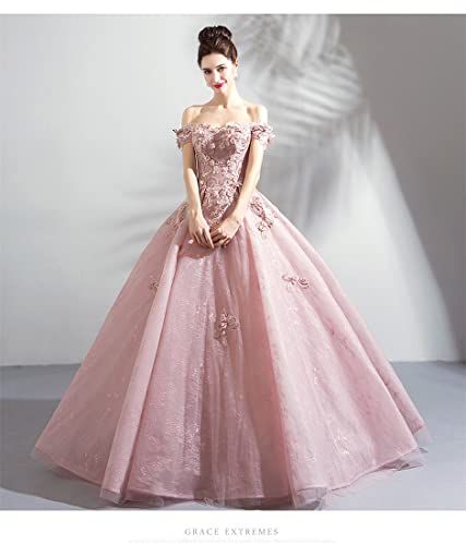[YUANYUAN] レディース ピンクドレス 宴会ドレス イブニングドレス ワンピース パフォーマンス コーラスホスト 発表会 演奏会 二次会 結婚式 立体的な花柄 刺繍 着痩せ 体型カバー エレガント マキシ丈 春夏 (ピンク,M,M)