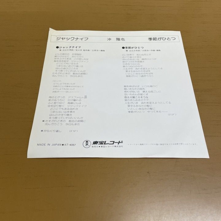 01 ! 見本盤 沖雅也 ジャックナイフ 季節がひとつ AT 4057 盤 EPレコード 7インチ 和モノ グルーヴ歌謡 A