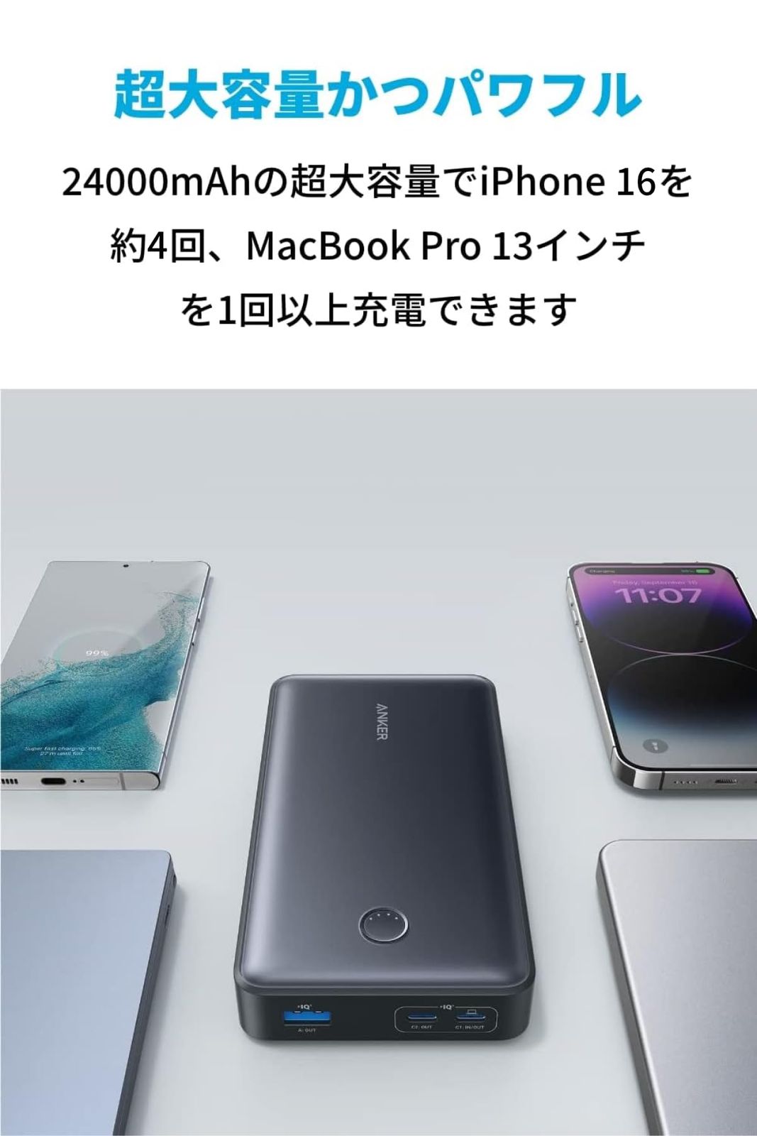 Anker 537 Power Bank PowerCore 24000 65 W モバイルバッテリー mAh 大容量 PSE認証済 PowerIQ 3.0 Gen 2 搭載 USB PD対応 iPhone 16 15 14