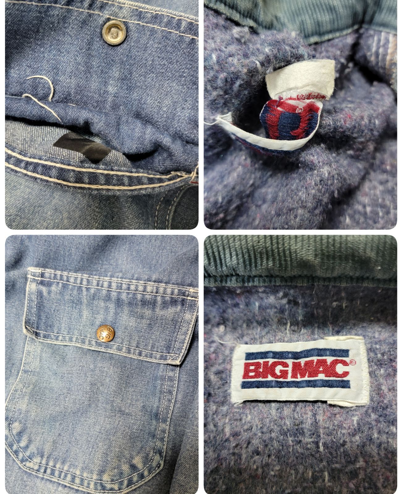 抜群の雰囲気 80 S ビッグマック BIG MAC カバーオール XL 裏地ブランケット 襟コーデュロイ インディゴ チョアコート