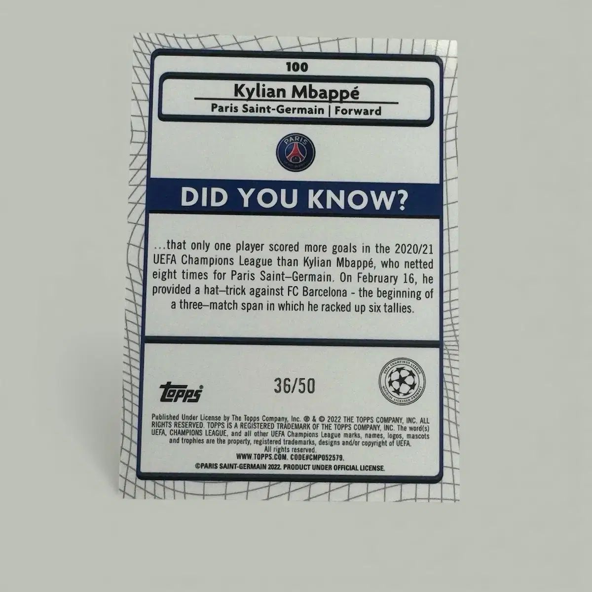 これは限定版のMbabéプレイヤーカードです。限定50個ですが、カードに傷があります