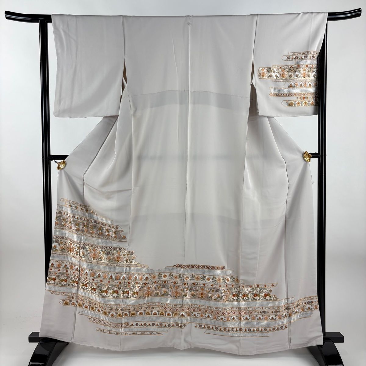 訪問着 身丈162 cm 裄丈64.5 M 袷 草花 七宝文 金糸 刺繍 灰茶 正絹 一つ紋