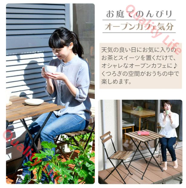 折りたたみガーデンテーブル-チェア3点セット テーブル1点-チェア2点セット アカシア材 お庭 ベランダ テラス バルコニー キャンプ カフェテーブル