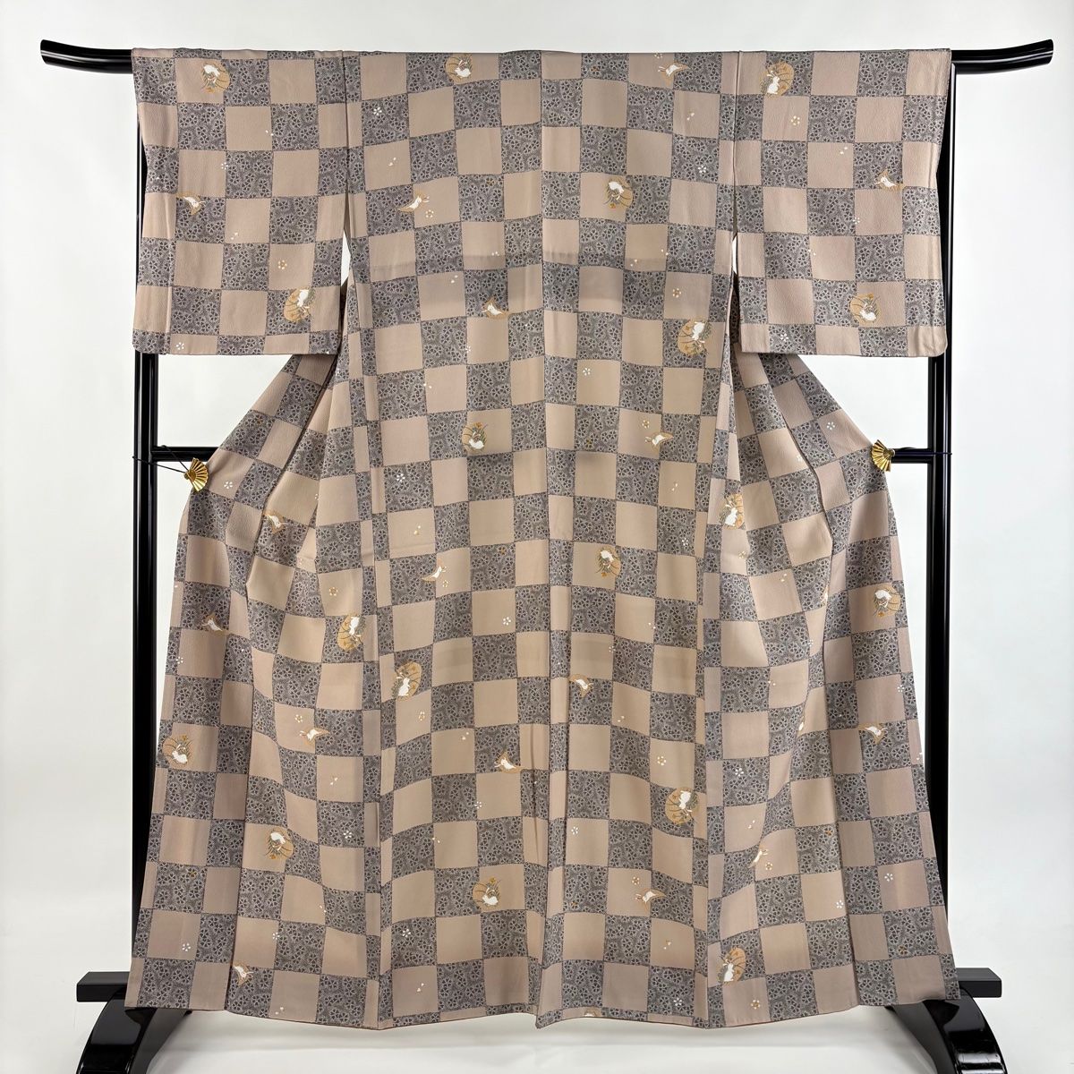 小紋 身丈163 cm 裄丈65.5 M 袷 市松 ウサギ 薄茶色 正絹