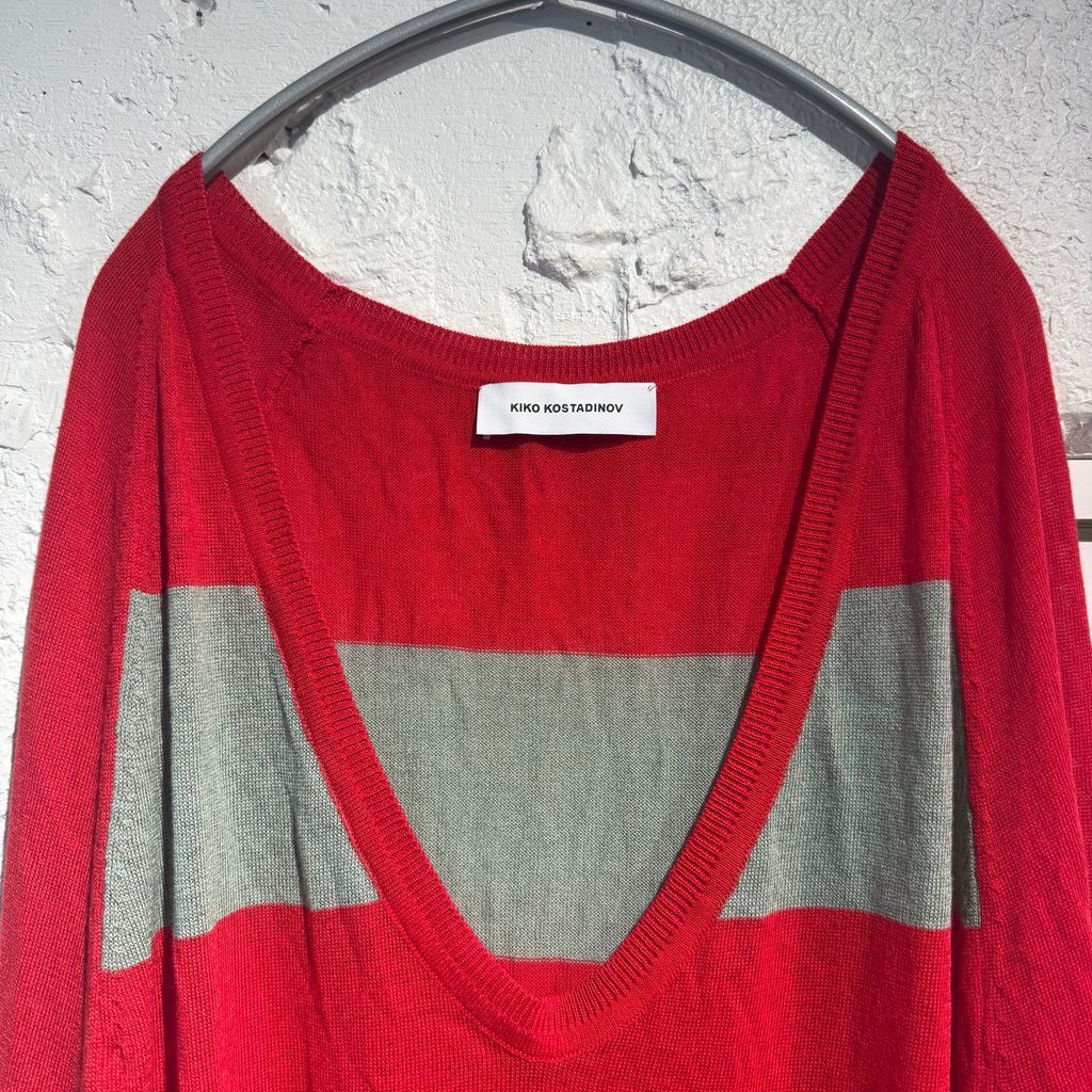 KIKO キココスタディノフ 22 SS Haidu Sweater Vネック ボーダーニット レッド系 size 46 表参道A 11