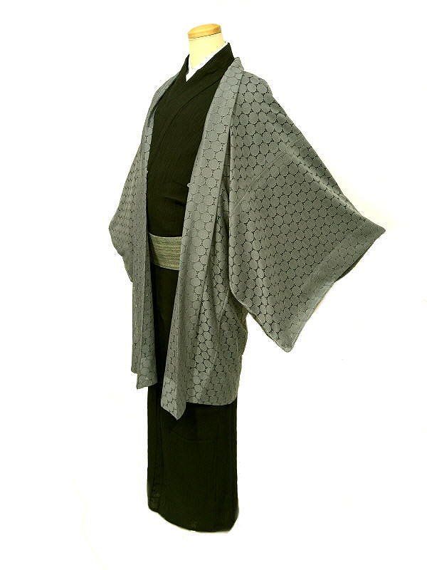 LLサイズ 男物 化繊 羽織 灰色 ドット柄レース 福服特製