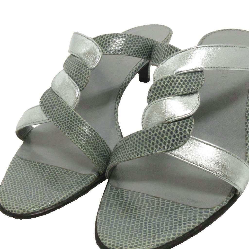 エルメス HERMES リザード ツイスト ミュール サンダル オープントゥ ヒール 青系 ブルー系 37.5
