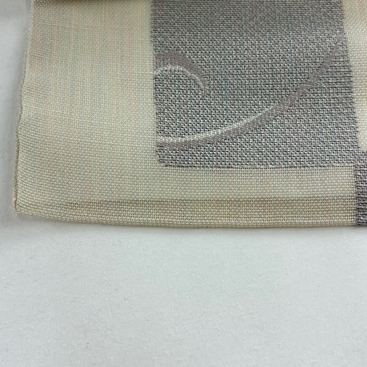 名古屋帯 秀品 夏帯 紗 市松 唐草 ラメ糸 箔 クリーム 正絹