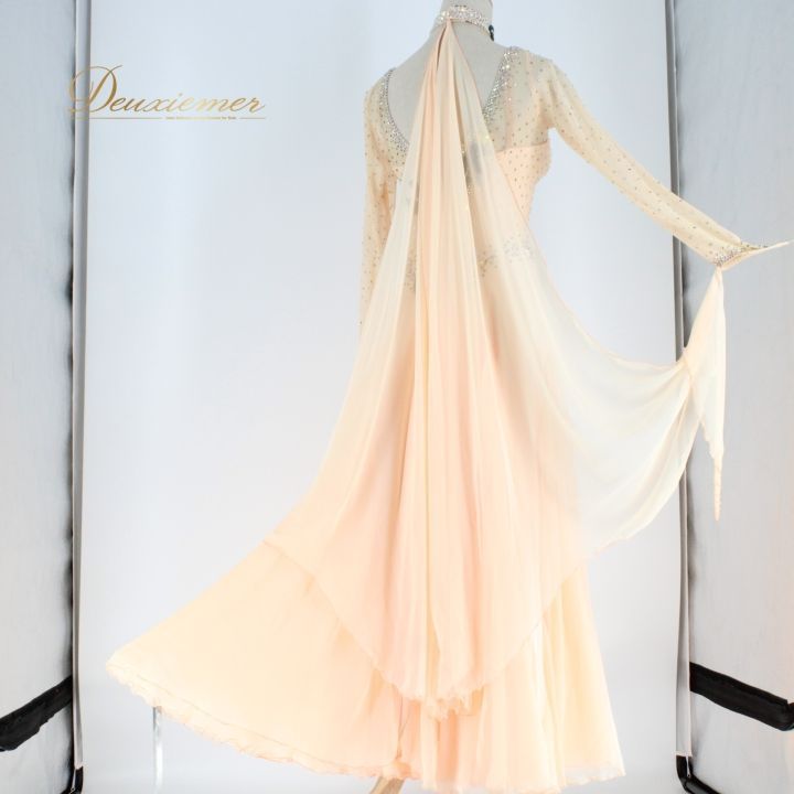 社交ダンス 衣装 白樺ドレス ドレス ワンピース フロート デモ 競技 ダンス パーティ 発表会 オレンジ 上品 感 ピンク系 フェミニン エレガント ドレッシー ステージ イベント 競技会用